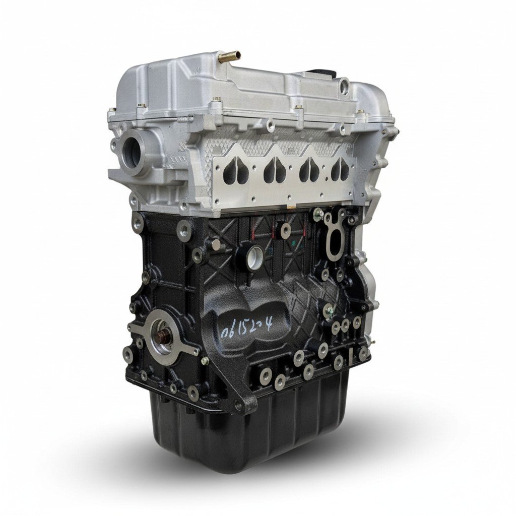 Motor completo que incluye tapa de válvulas, culata, bloque, cárter y bomba de aceite, listo para instalación.